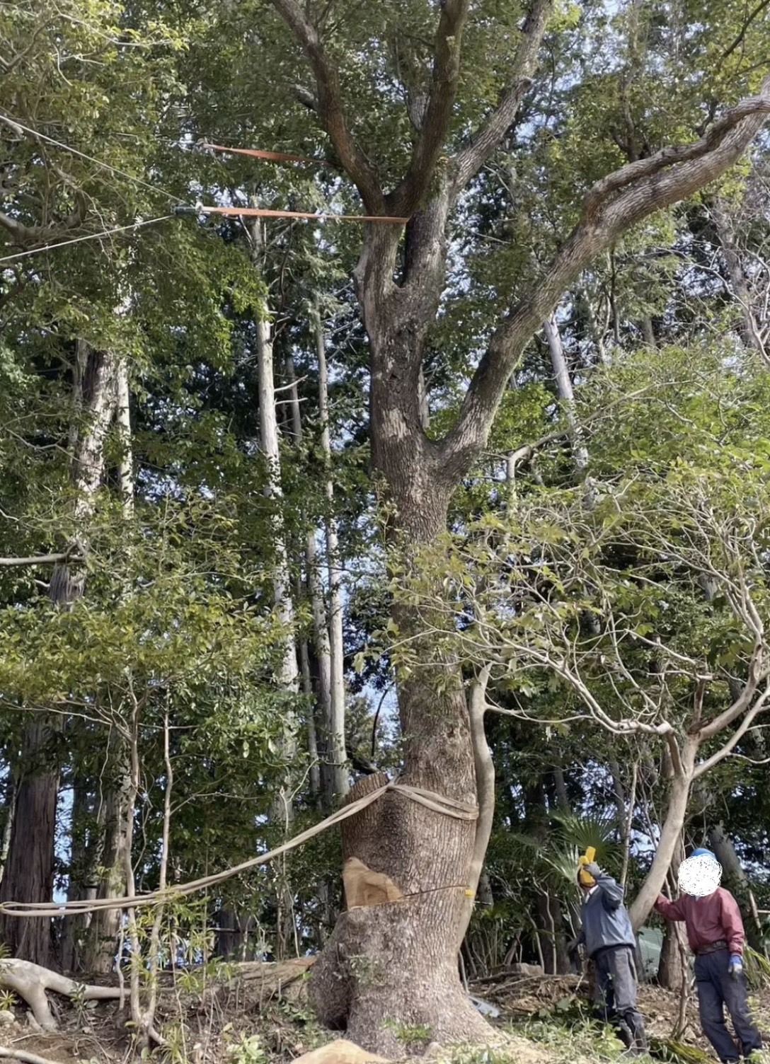 鹿児島市の管理会社さんから、「山に生えている高木3本の伐採をお願いしたい」とご依頼いただきました。