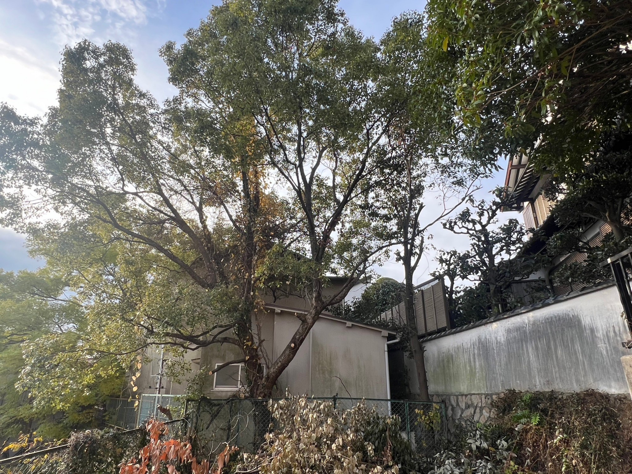 鹿児島市のお客様から「裏庭の木がどんどん大きくなって、台風の時に倒れてこないか心配で見にきてほしい」とご相談をいただきました。