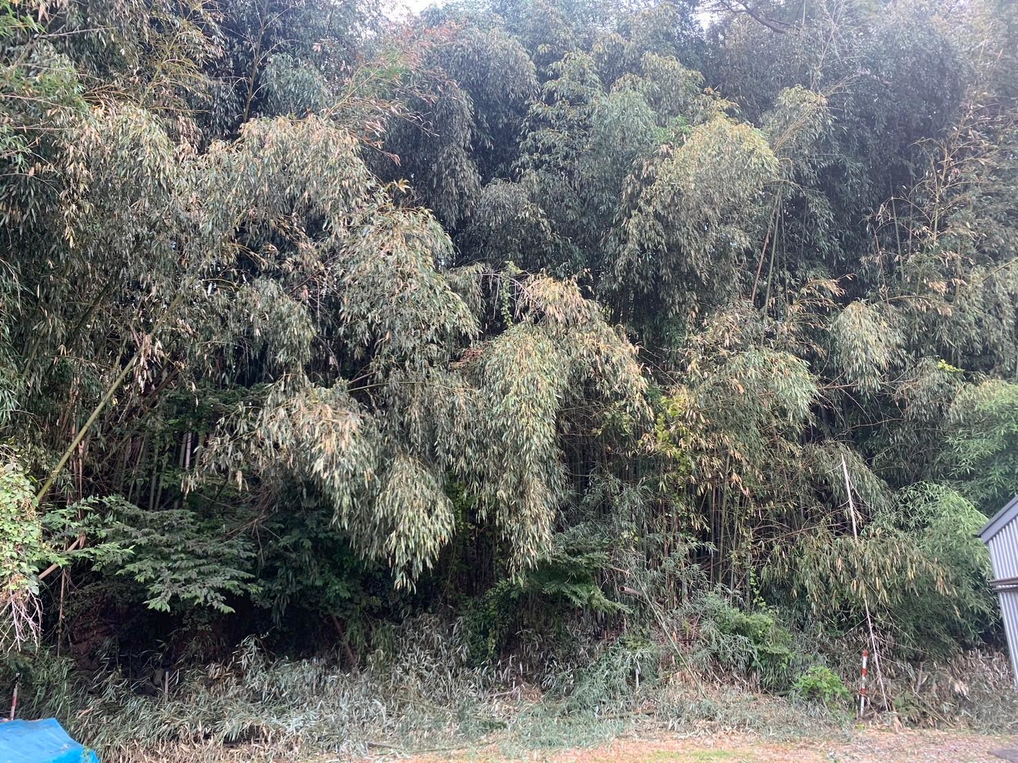 鹿児島市にお住まいのお客様から、裏山の竹が家にかかりそうで危ないため伐採してほしいとご依頼いただきました。